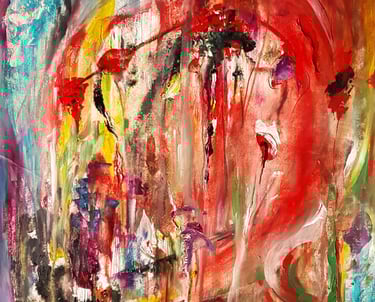 Mi paleta viva y luminosa busca transmitir energía, movimiento y vitalidad. en mi proceso creativo, el juego y la magia son portales que me invitan-y nos invitan- a cruzar hacia otra dimensión, donde cada obra se convierte en un espejo y una invitación a reconocernos.